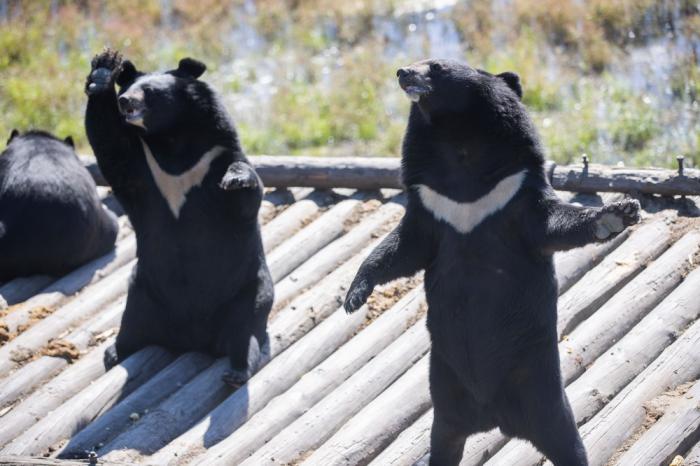 9月4日拍摄的抚远黑瞎子岛探秘野熊园内的黑熊。在抚远市的黑瞎子岛探秘野熊园,管护员魏传相通过视频监控直观感受着生态变迁:“这几年,岛上的生物物种更加丰富,我们看到过国家级保护动物,视频中还记录下狍子、野猪的身影。”