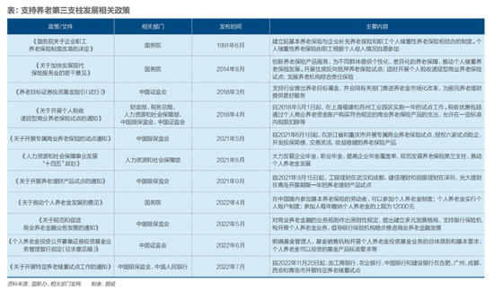 伴随个人养老金制度落地,亦明确了由个人养老金和其他个人商业养老金融构成的养老第三支柱。
