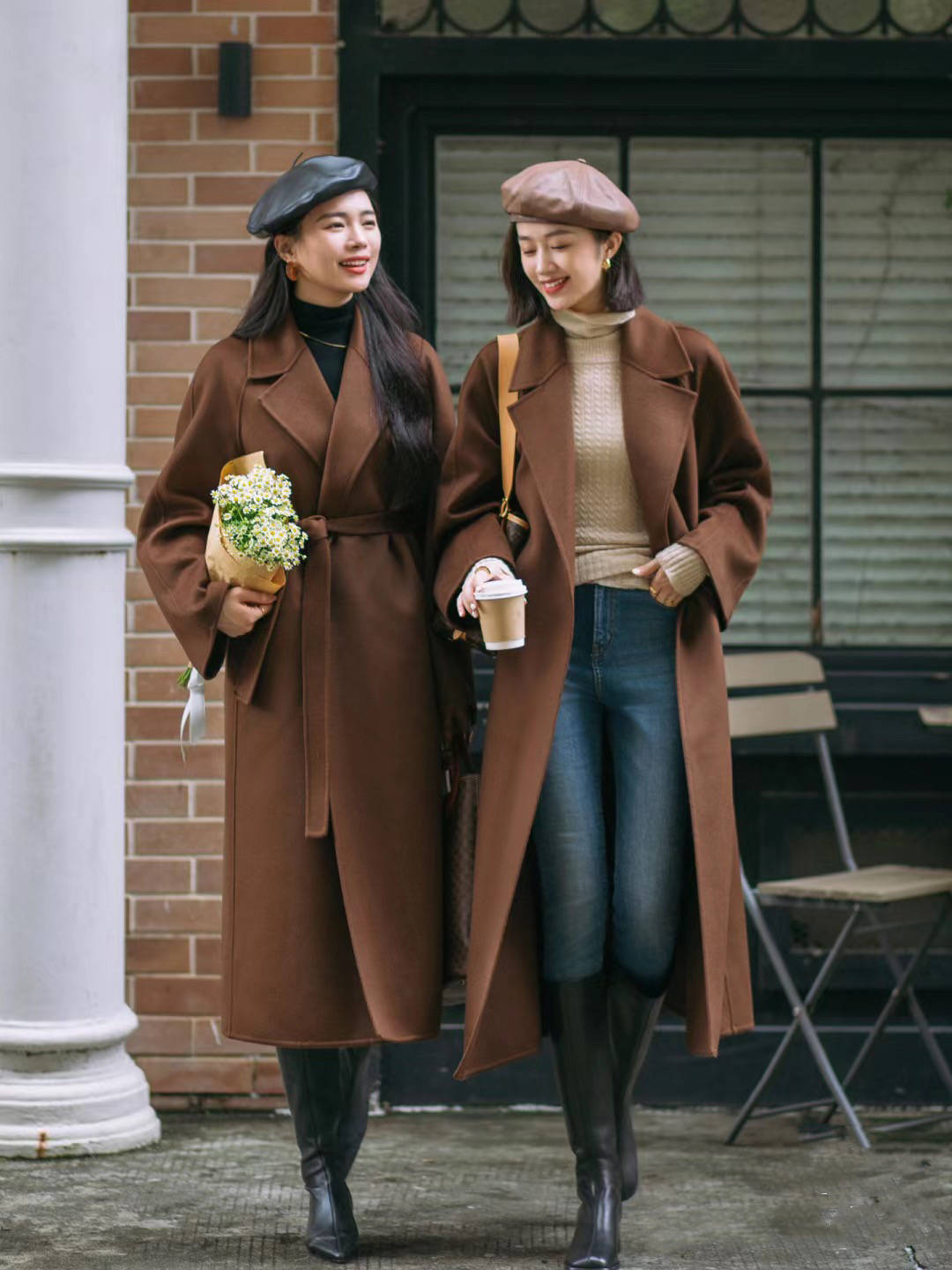 这种棕色系的大衣,可以与牛仔裤,及膝的长靴搭配在一起,呈现出更加精致帅气的美。日常的搭配中,棕色大衣可以选择细腻的羊绒质地,表现出高级美。