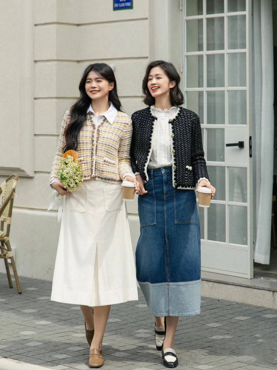 秋天里的小香风外套,大概是人手必备的基础单品了。你能想到的搭配方式是什么呢?小香风外套可以搭配面料挺阔的半身裙,遮胯显瘦还很洋气。