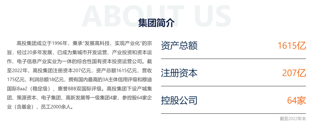 综合成都高投集团官网信息,经过20多年发展,该集团已成为集城市开发运营、产业投资和资本运作、电子信息产业实业为一体的综合性国有资本投资运营公司,下设电子集团等4个一级集团,同时2022年2月,该集团构建了包括电子集团强链在内的“1+4”国有资本投资专业布局,并持有以天府软件园、天府生命科技园、AI创新中心为代表的产业园区,园区企业近1300家,还投资了华鲲振宇、华存智谷、明夷电子、芯进电子等电子信息前沿科技实体,创立了四川省人工智能研究院、成都高新区通信测量技术研究院等6个高能级创新孵化平台,同时旗下公司还涉足功率半导体等领域。