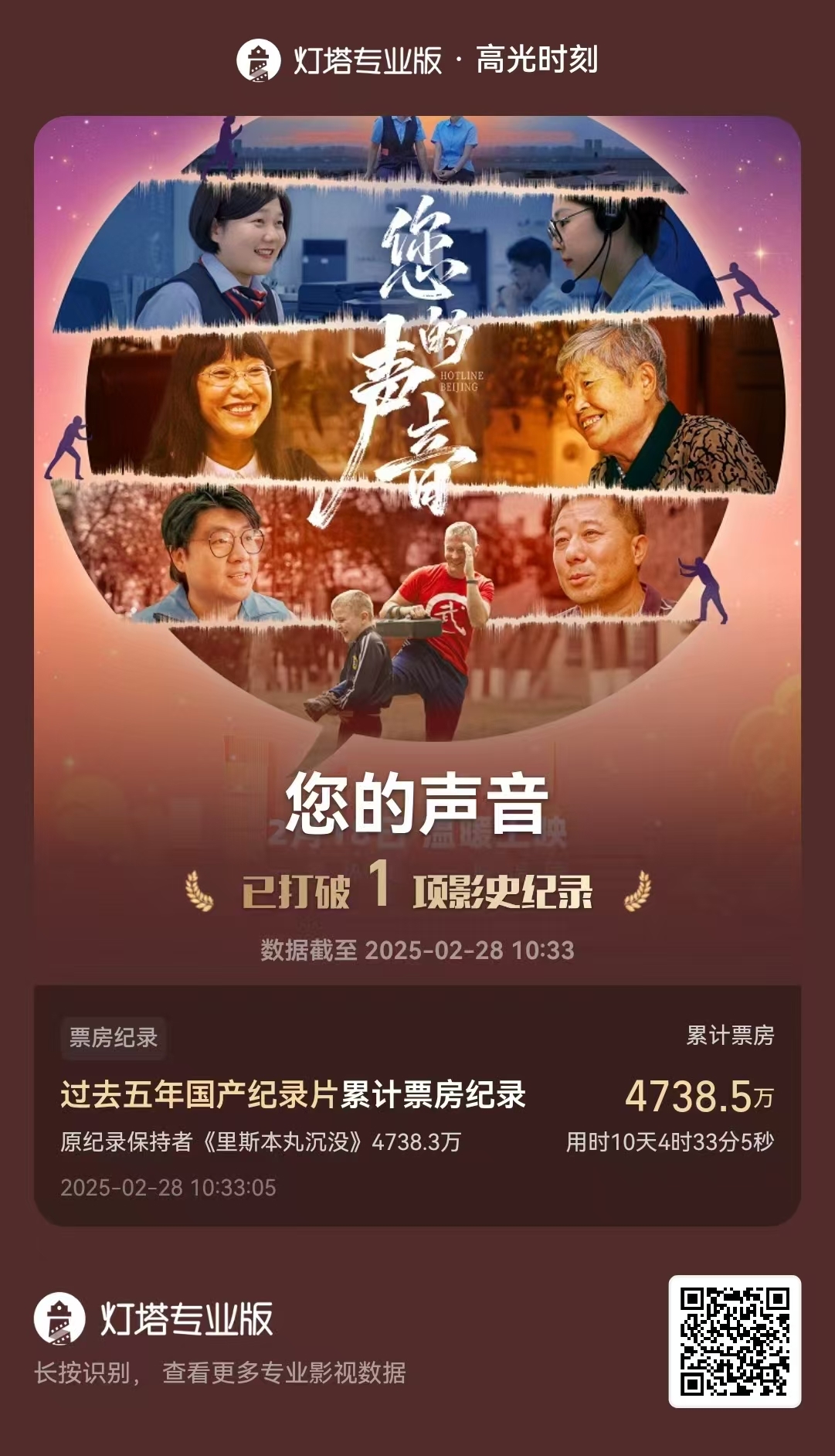 打破过去五年国产纪录片累计票房记录,《您的声音》火热上映中!