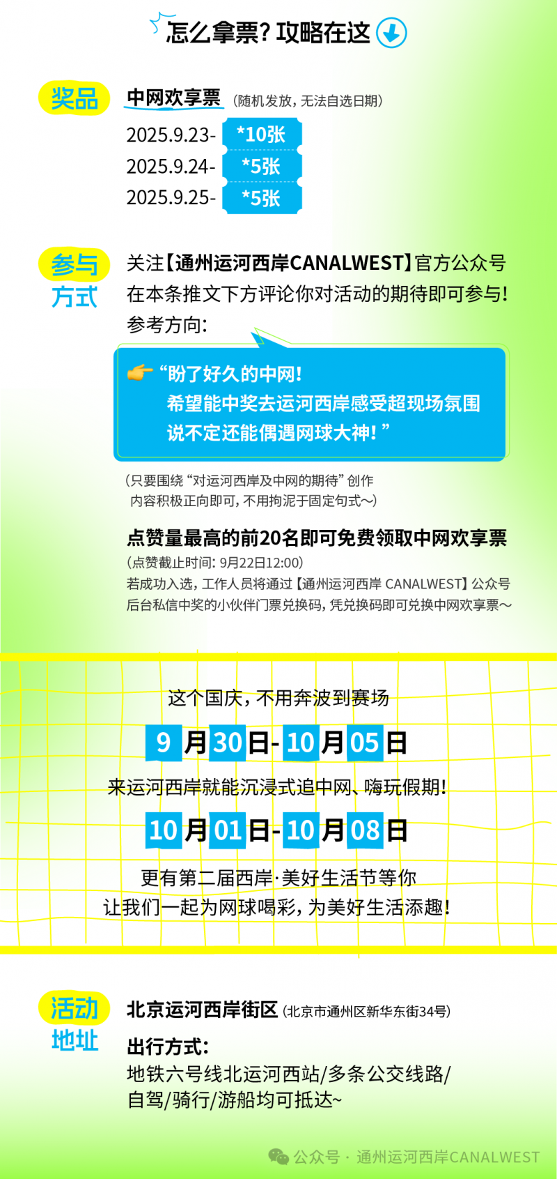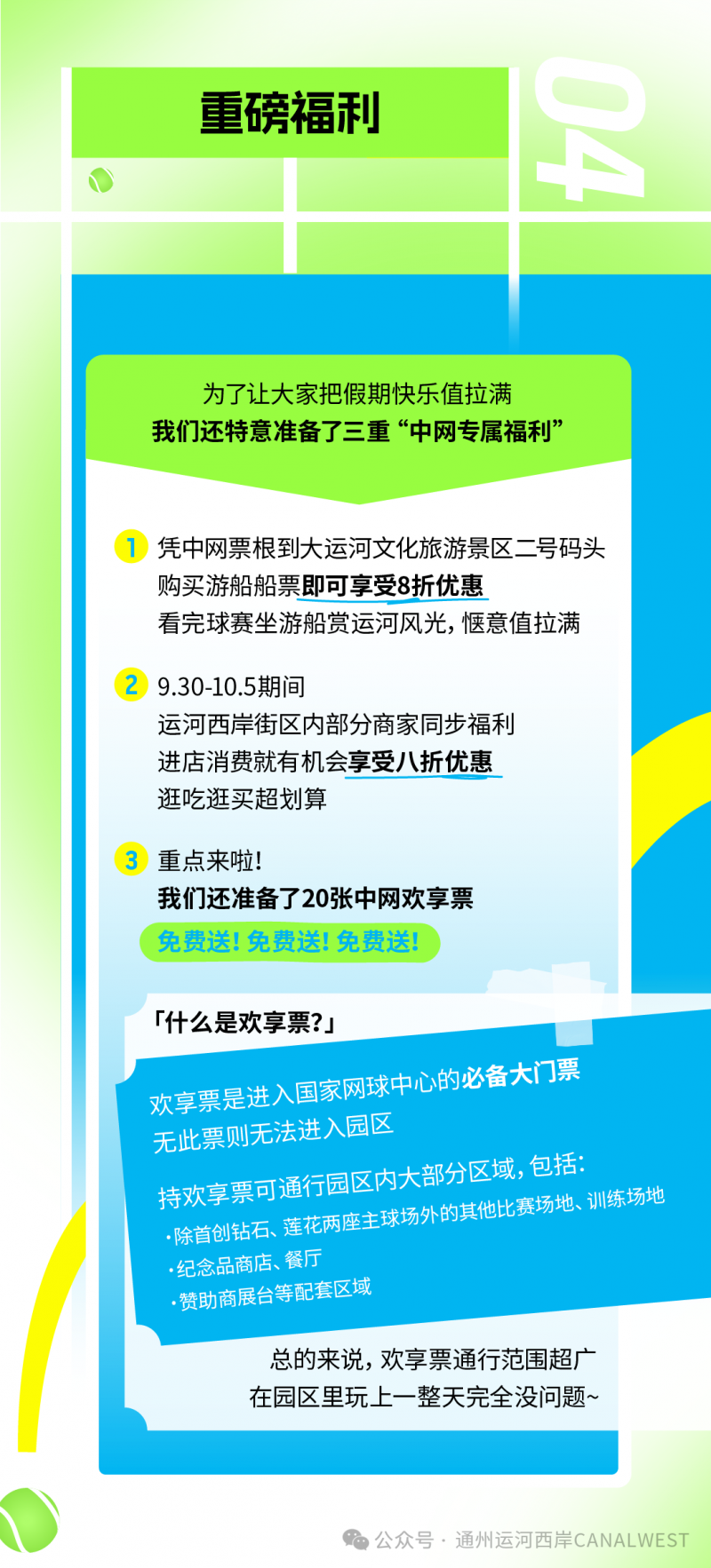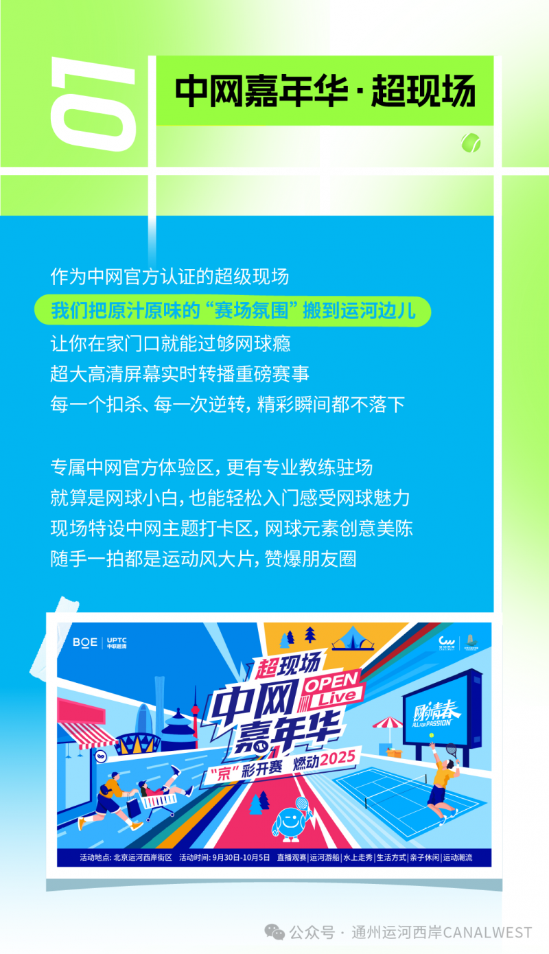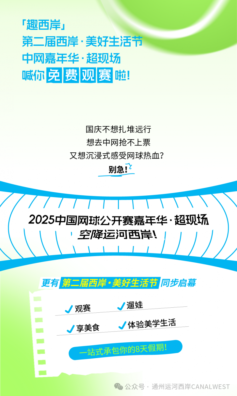 运河西岸中网嘉年华·超现场喊你免费观赛啦!