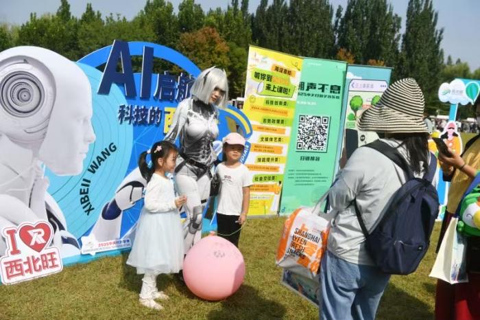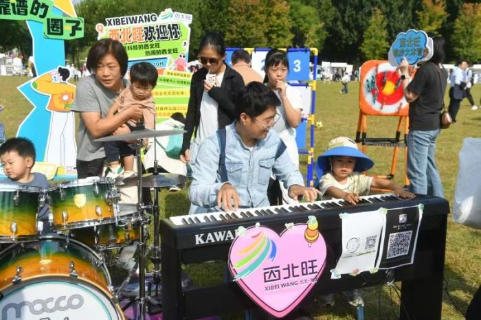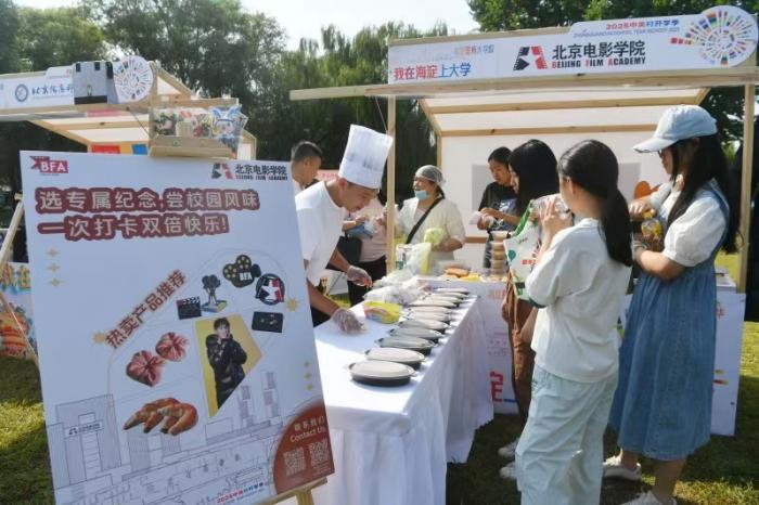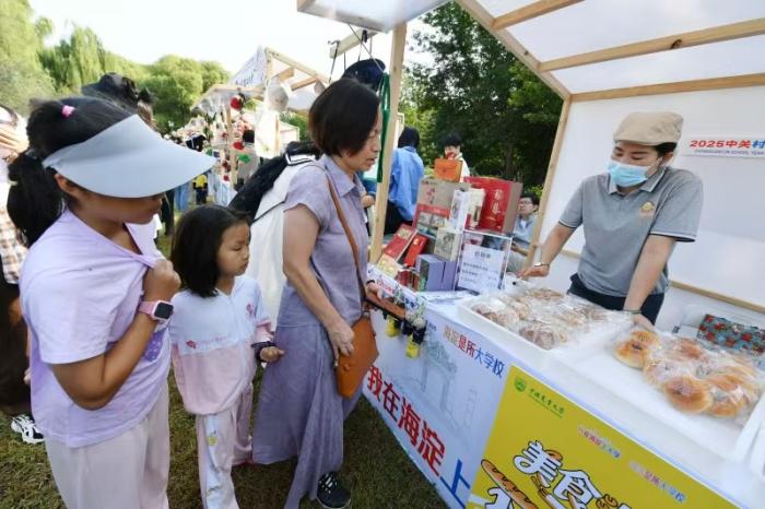 在海淀公园,海淀区各街镇和委办局的29个“迎新社团”展位依次排开,“高校市集”区域23家高校展位香气四溢,腾讯、滴滴等辖区企业携展位亮相。