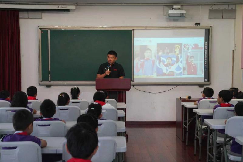 9月22日,“中华体育精神大讲堂”校园宣讲活动、“冠军体育课”运动员进校园活动走进北京市朝阳区呼家楼中心小学。短道速滑世界冠军李佳军以坚守、拼搏、传承等作为关键词,为同学们带来一堂兼具温度与力量的“成长课”,激励大家以中华体育精神为翼,勇敢奔赴属于自己的“人生赛道”。