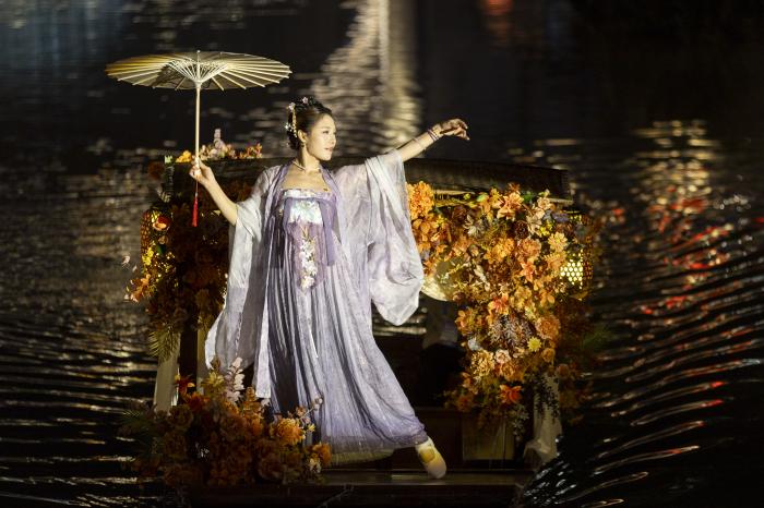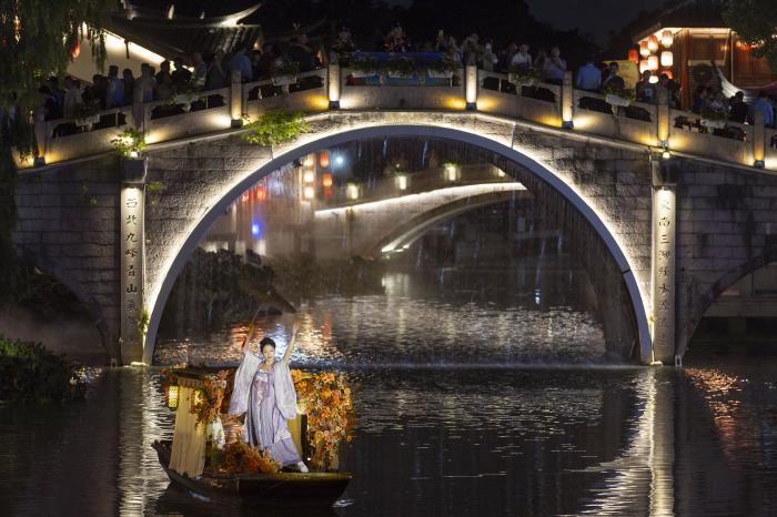 9月22日,演员在七宝古镇内表演。作为闵行“春申美好生活季”系列活动的重要组成部分,七宝古镇将自9月22日至10月8日限时推出提灯探宝、光影水舞表演、钟楼光影秀及民乐艺术表演等特色活动,为市民带来光影盛宴。新华社记者 王翔 摄