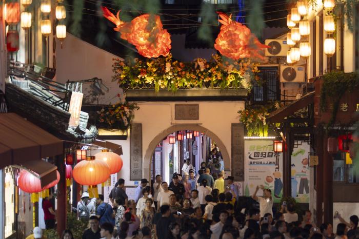 9月22日,人们在七宝古镇参观游玩。新华社记者 王翔 摄