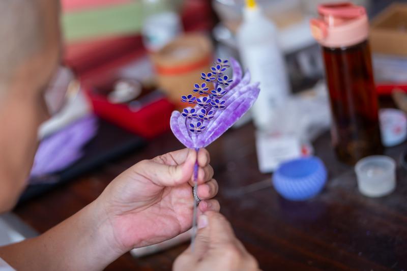 “虽然现在很多工艺品用机器做得既逼真、成本又低,但机械化对绒花这门手艺构不成挑战。”蔡志伟非常有信心,因为早些年绒花也试过机械化生产,结果失败了。