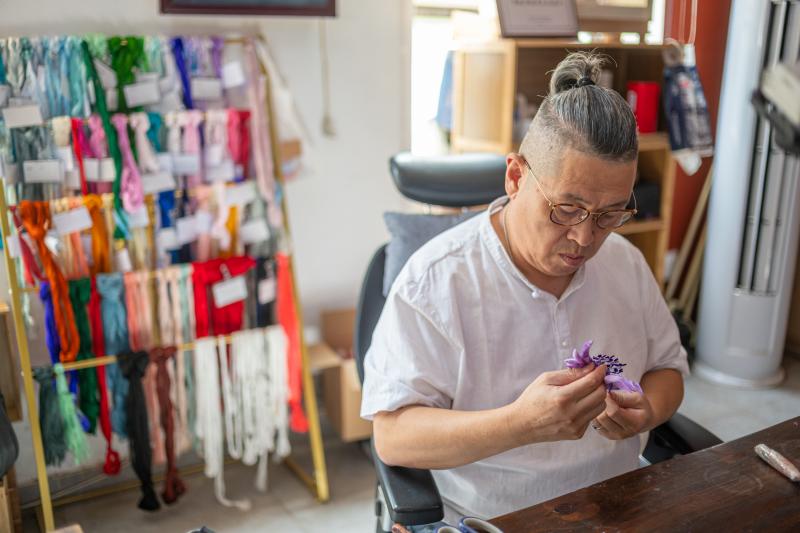 在机器可以复刻千万花朵的时代,他却执意用手工搓捻出一朵永不凋零的“荣华”。蔡志伟从师父那句“不知如何去见祖师爷”的叹息中接过火种,在二十余载光阴中,不仅复活了一门濒临失传的技艺,更让它穿越时空,绽放在国际秀场、都市街头和年轻人的日常之间。他认为,真正的传承不是将传统供奉于高阁,而是让千年绒花,重新“开”进今天的生活。