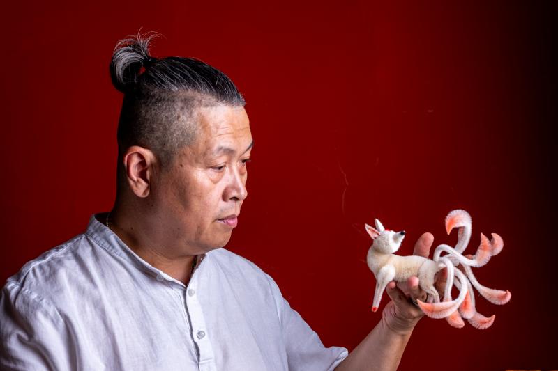 “我从小在原崇文区长大,那里有非常出名的花市大街,集中了很多传统手工艺老厂子,绢花厂、绒鸟厂、料器厂、漆雕厂……都在那一带。所以崇文区以前号称‘手工艺之乡’。”蔡志伟说,上学时,手工课也特别多,捏面人、剪纸、扎风筝,他都特别喜欢,心里一直埋了颗种子:想正经学一门手艺。