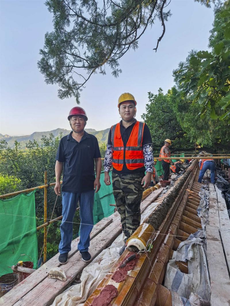 可这行也是真苦。“泥瓦匠是在所有文物修复行当里最苦最累的。”伊德林说,活儿都在户外,得在高墙屋脊上拼手艺,在风吹日晒里挣生活。春秋尚可,北京夏天漫长,修复师得耐得住烈日炙烤和蚊虫叮咬。一年到头,人随项目走,几乎没有休息,只有寒冬腊月才能回家。