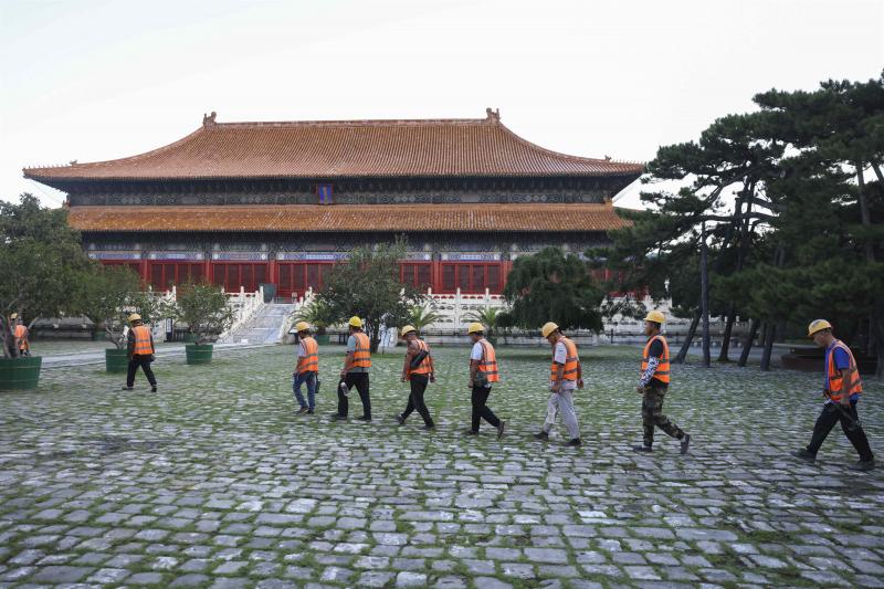 最近几个夏天,明十三陵的文物修复师们每天都能捕捉到早起的清凉。清晨的凉爽稍纵即逝,早上五、六点开工之后,是一天中最珍贵的作业时间。当每天的第一波游客走进长陵,伊文龙和同事们已经在屋脊上完成了当日四分之一工作量。
