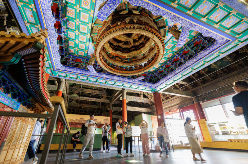 9月18日,北京古代建筑博物馆,游客在参观北京隆福寺万善正觉殿明间藻井。新京报记者 王子诚