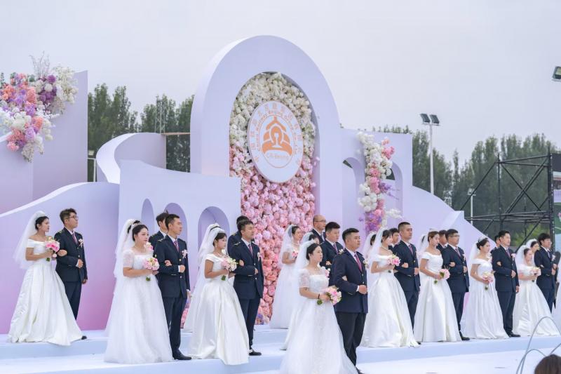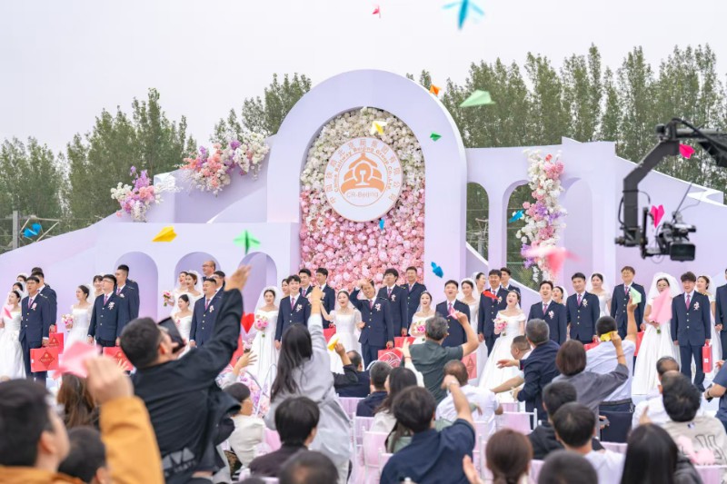 9月23日上午,中国铁路北京局集团有限公司“缘定京铁,情系一生”职工集体婚礼在北京动车段举行。30对新人分别来自国铁北京局大家庭的不同岗位——他们中既有驾驶列车的火车司机,也有服务旅客的客运员,还有守护线路的线路工、接触网工……尽管日常职责各异,但这一天,他们拥有了共同的身份——新婚夫妻,在200余名家属与职工代表的共同见证下,新人携手步入人生中最甜蜜的婚姻殿堂。