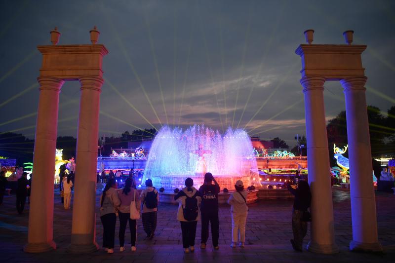 19时左右,随着彩灯点亮,世界公园内瞬间灯火辉煌。步入景区,五步一景十步一观,绚烂的景象令人目不暇接。游客随着光影闪烁来到不同风情的缩微景观前,仿佛开启了一场神奇的环游世界之旅。