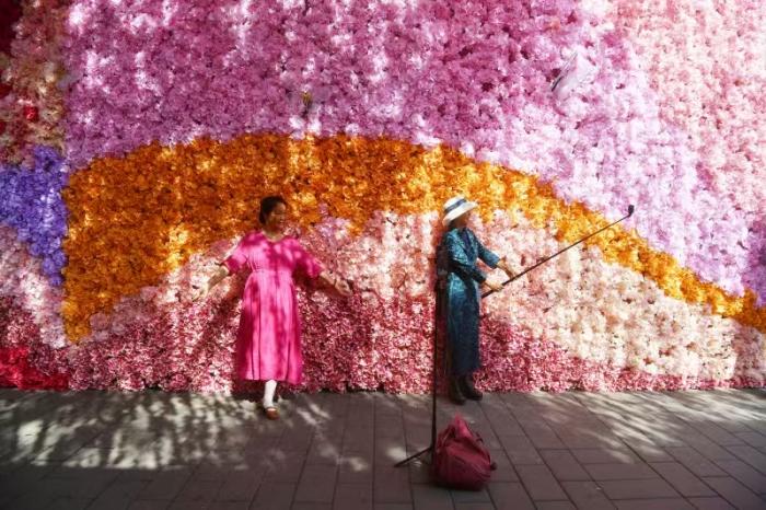 游客在园内赏花拍照。