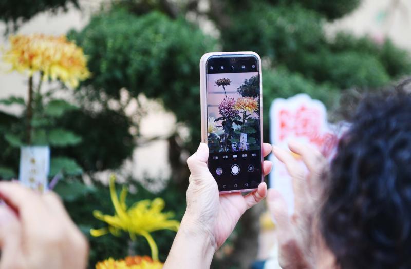 位于中心广场的“陶然亭里”精品菊展展棚内,传统插花手法搭配精品造型盆景,融入北京双市花理念,将月季与菊花巧妙结合。展棚内不仅有50余种独本菊,还有公园自主培育的多种配色悬崖菊,以及乒乓菊、炫彩菊、案头菊、桩景菊等特色品种,尽显菊韵秋香,市民随手一拍皆是秋日大片。