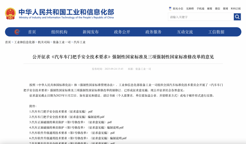 针对隐藏式车门把手安全问题 工业和信息化部公开征集意见