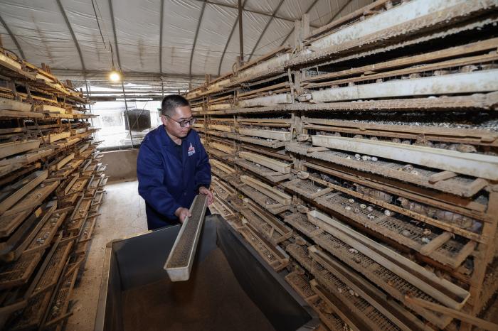 该运营模式建立“种苗统供、饲料统配、兽药统管、技术统训、销售统营”服务体系,建设育种、繁殖、加工、销售一体化鹌鹑产业链,孕育出了特色鲜明的鹌鹑养殖产业。9月23日,在金华市金东区的金华黄氏鹌鹑专业合作社养殖场内,工作人员在给鹌鹑喂食。