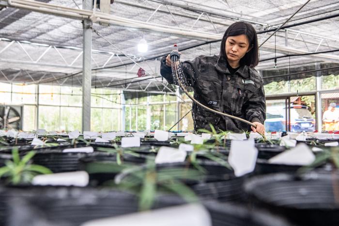 9月23日,在重庆金佛山国家级自然保护区管理事务中心,工作人员韦冠吾在实验室进行植物繁育实验。