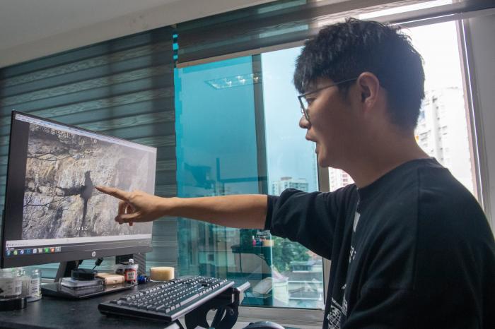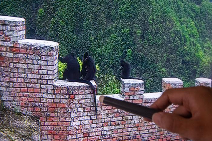 9月23日,在重庆金佛山国家级自然保护区管理事务中心,工作人员李新通过视频分析黑叶猴生活习性。