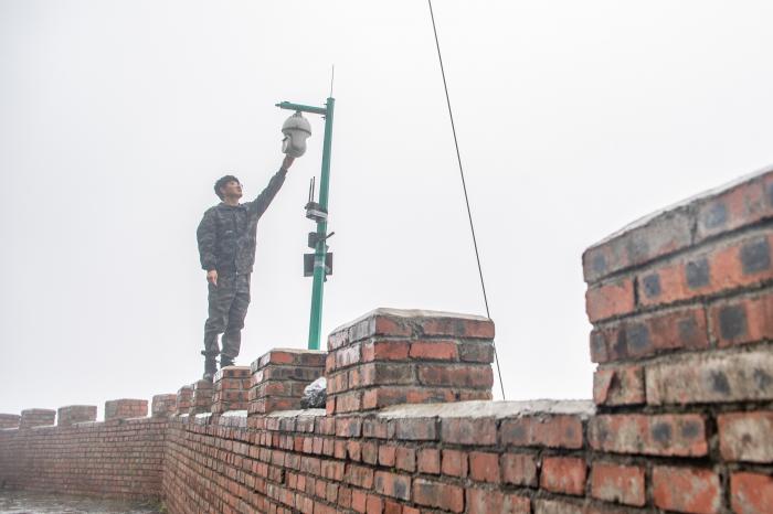 9月23日,在金佛山黑叶猴远程视频监控点,工作人员李新在检查观测设备。