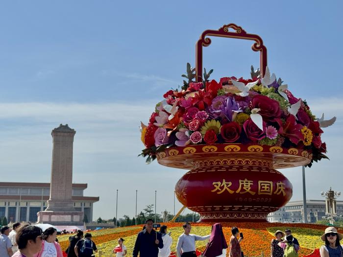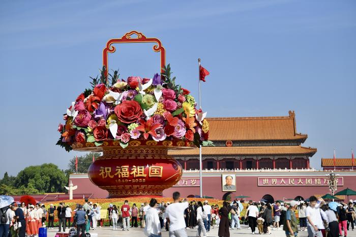 天安门广场祝福祖国花篮亮相 传递对新中国成立76周年的祝福