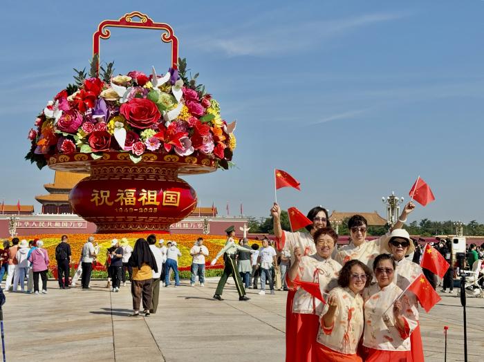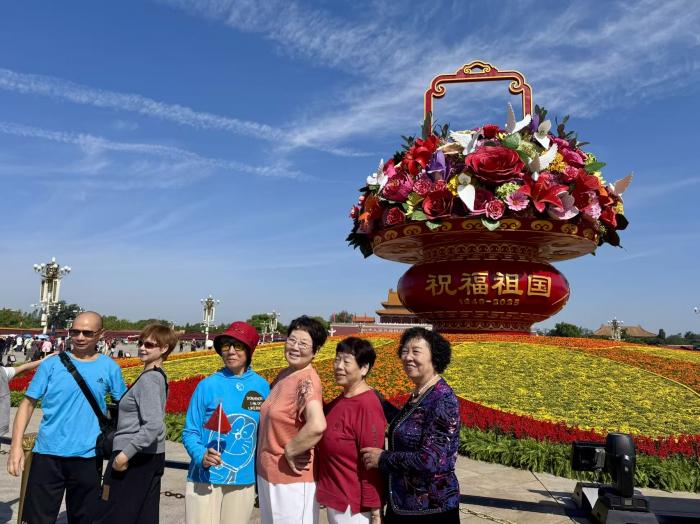 聚焦|天安门广场“祝福祖国”花篮亮相