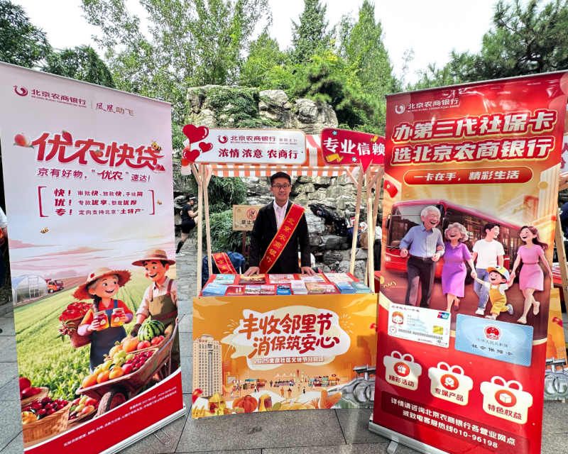 活动现场,北京农商银行围绕“丰收邻里节”的主题,摆放助农产品海报,宣传乡村助农服务。作为唯一一家被认定为“北京老字号”的金融企业,北京农商银行坚守支农支小市场定位,以实际行动践行着金融服务乡村振兴的使命与担当。据介绍,北京农商银行逐年出台金融支持首都乡村振兴行动方案,聚焦稳粮扩菜、农业科技、百千工程、农村改革等重点领域,不断加大涉农信贷投放。十余年来,北京农商银行累计向乡村振兴领域投放贷款超6600亿元,为各类新农村建设项目提供授信支持约2400亿元,连年在北京中资银行信贷政策导向评估乡村振兴领域获评最高等级。