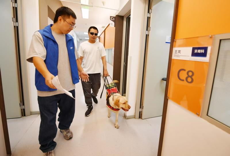 为保障30名视力残疾人顺利进入瑞泰口腔医院接受服务,前期准备工作要细致充分。北京青年报记者了解到,活动前,北京市无障碍环境建设促进中心专业人员、视力残疾人代表和导盲犬使用者提前进入现场,为体验者进行无障碍环境问题排查,并制定详细的改造方案,开展服务人员助盲技能培训。医院还针对低视力残疾人制作了地面无障碍引导标识系统。经过专业评估,导盲犬使用者最终可以在导盲犬的引领下进入拍片室和治疗室,实现全程陪诊,极大提升了就医便利性。