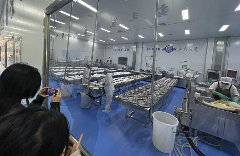在生产车间中,北青报记者注意到,有员工戴着口罩、头套,身着白大褂,正忙着将煮熟牛奶上的奶皮子揭出来。已有多家北京餐饮企业向园区下了订单。