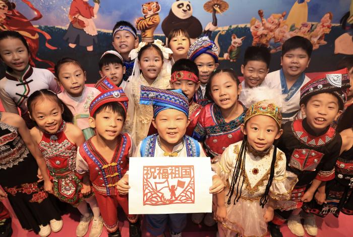 9月25日,在湖北省武汉市,未来实验小学学生开展迎国庆主题活动。新华社发(赵军 摄)