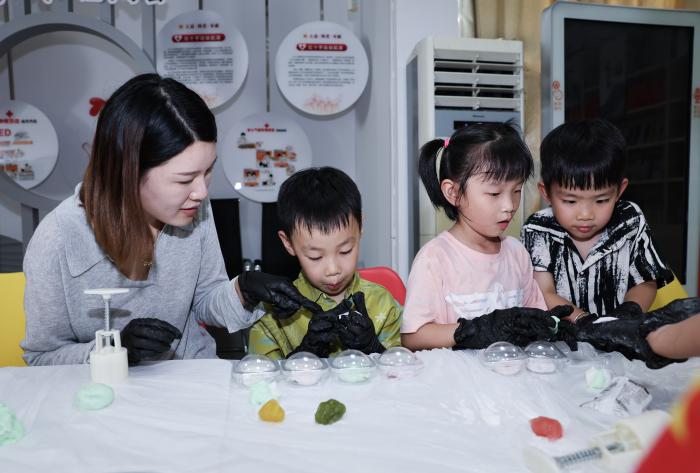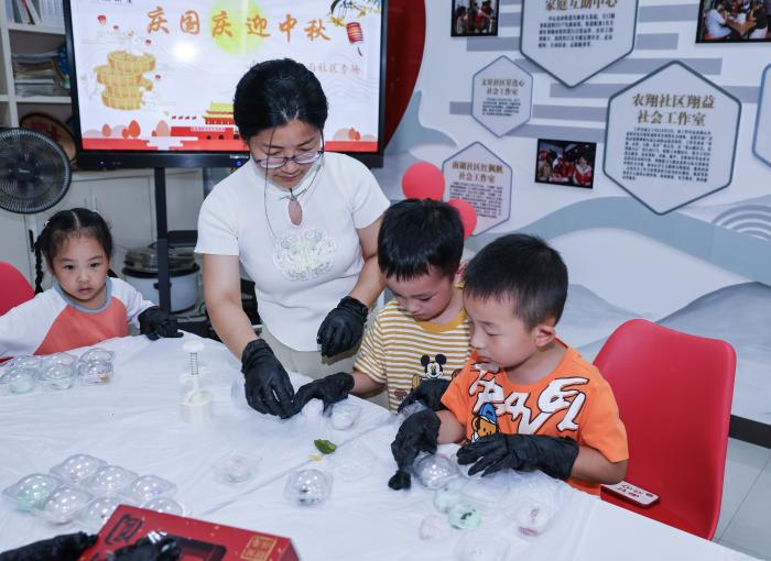 9月25日,浙江省嘉兴市南湖区南湖街道烟雨社区开展亲子月饼制作活动,孩子们在体验传统技艺的过程中感受文化魅力。新华社记者 徐昱 摄