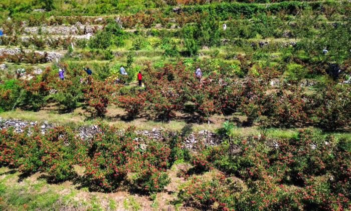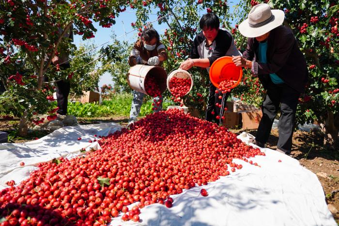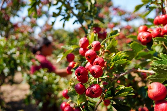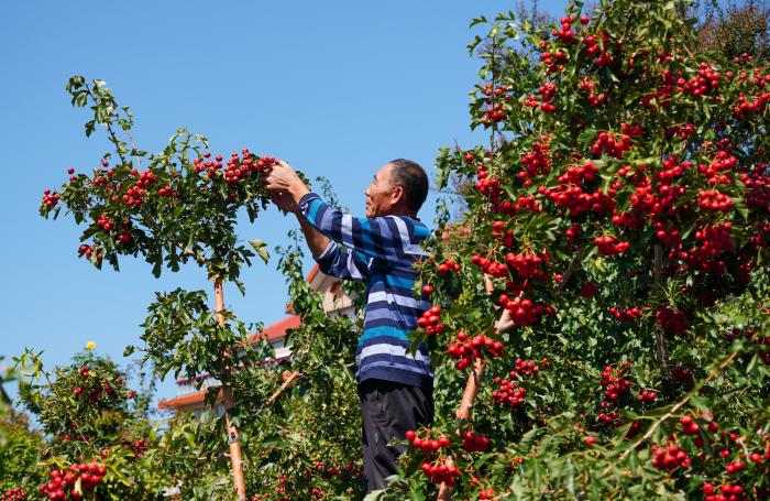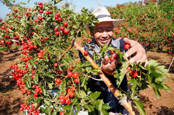 近日,山东省新泰市山楂陆续成熟,当地果农忙着进行山楂收获、运输、存储等工作。