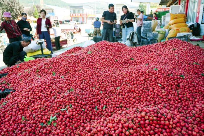 近年来,新泰市因地制宜发展山楂产业,当地山楂种植面积达4.7万余亩,山楂产业已成为带动当地群众增收致富的特色产业。这是新泰市刘杜镇的一处山楂收购点(9月25日摄)。