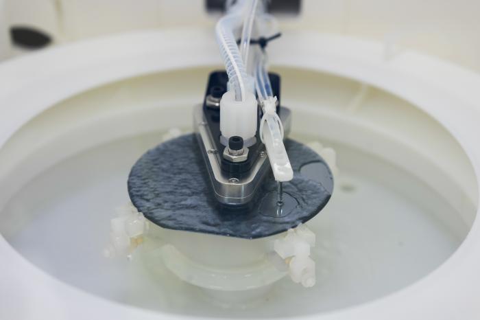 这是9月25日在上海交通大学无锡光子芯片研究院光子芯片中试线上拍摄的湿法工艺。