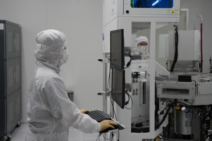 9月25日,工程师在上海交通大学无锡光子芯片研究院光子芯片中试线光刻间工作。