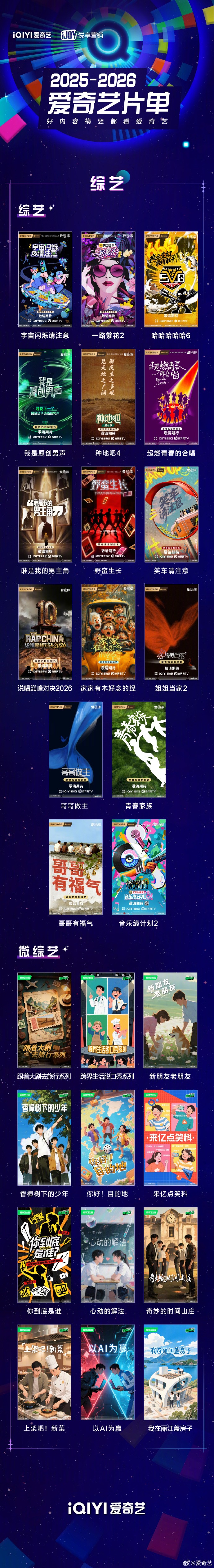 微综艺以短小精悍、形式灵活的特点精准契合用户碎片化娱乐需求,即将推出《赌上盒饭吧》《跟着大剧去旅行系列》《wei!快出来玩》第二季等作品,进一步丰富爱奇艺内容供给形态。