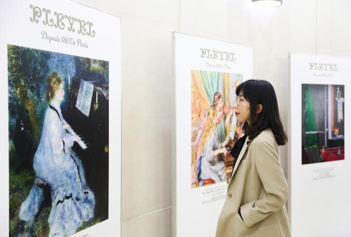 活动现场,嘉宾参观与钢琴有关的艺术作品展板。