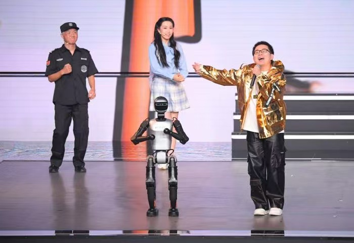 开幕式以“感知·亦城生命”“探索·亦城密码”“未来·亦城致远”三大篇章展开,14个节目紧扣经开区发展脉络。轻喜剧情景小品展现区域产业实力与宜居环境,机器人京剧秀实现传统与科技跨界融合,电声乐队与沙画演绎凸显“宜业更宜居”底色。其中,原创舞蹈《代码共生体》极具亮点,中国舞演员与宇树G1机器人“人机共舞”,将科技元素化作具象肢体语言,打造跨越人机边界的视觉体验。