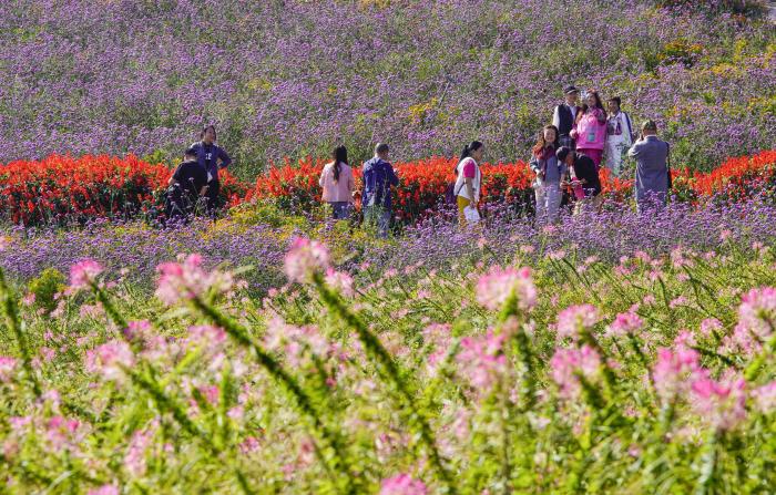9月26日,游客在河北省承德市兴隆县南天门乡高山花海景区赏花游玩。新华社发(刘满仓摄)