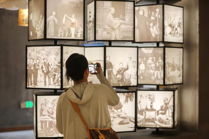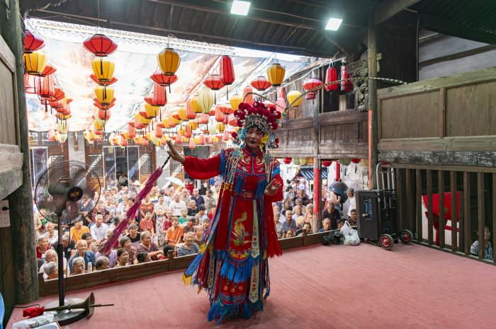 9月26日,在浙江省兰溪市永昌古镇李渔风情街上,当地居民和游客在欣赏婺剧表演。新华社发(胡肖飞摄)