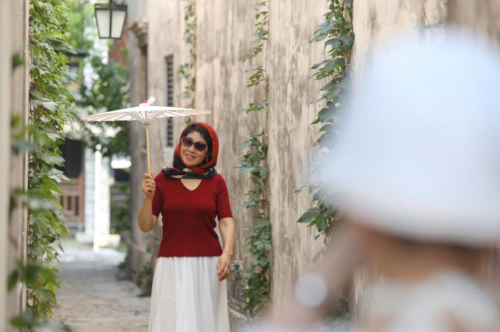 9月26日,游客在浙江省海宁市盐官古城休闲游玩。新华社发(金鹏摄)