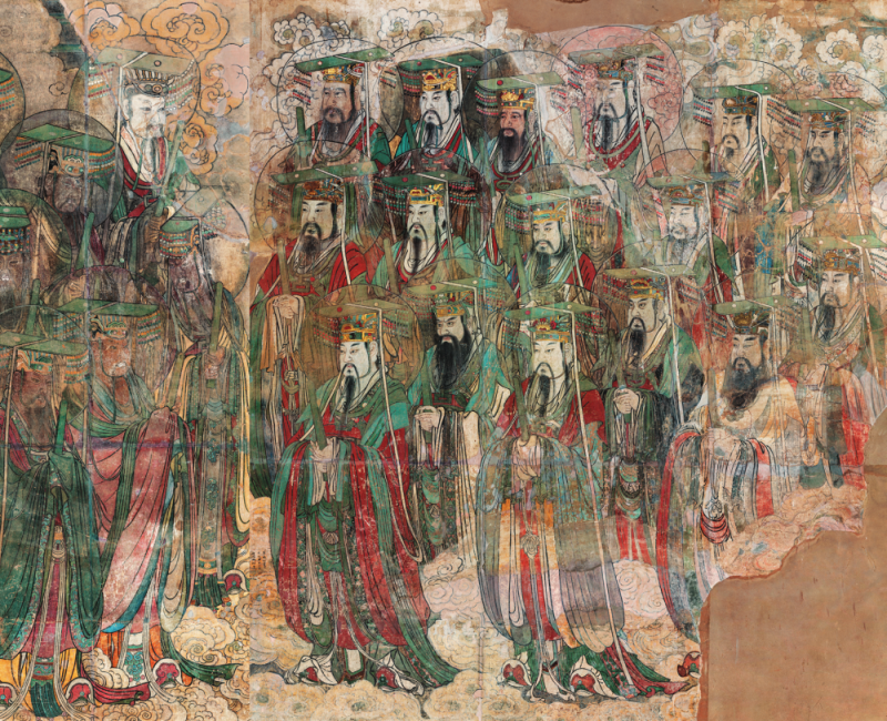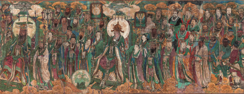 山西永乐宫距今已有近800年的历史,是我国现存最早、保存最大、最为完整的元代道教宫观,以精美绝伦的壁画艺术、气势恢宏的宫廷建筑、举世瞩目的搬迁工程、独具特色的道教文化名扬四海。其中最负盛名的当数永乐宫三清殿内的大型壁画《朝元图》。这幅鸿篇巨制以大型人物仪仗形式表现了道府诸神朝谒元始天尊的盛大场景。画面构图考究,画工精妙,承唐宋风韵,堪称中国传统壁画艺术的典范之作。