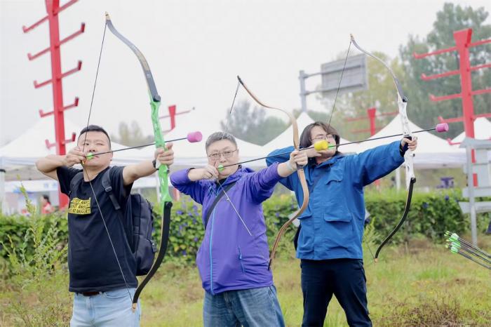 非遗体育文化展区内,传统非遗弓箭吸引了众人现场驻足PK,小朋友们则沉浸在投壶、飞盘、迷你高尔夫等体验项目里。活动让每位参与者都在比赛之余感受到传统体育文化的魅力。