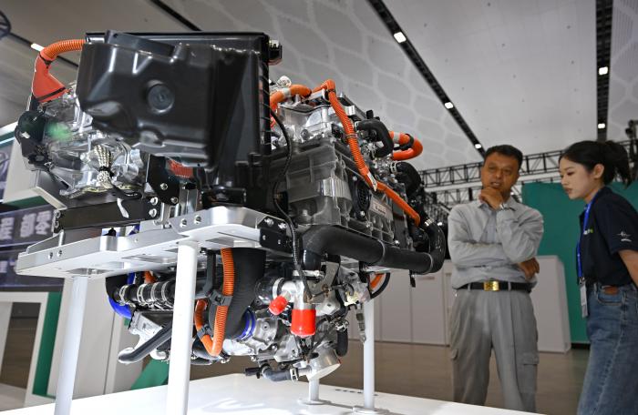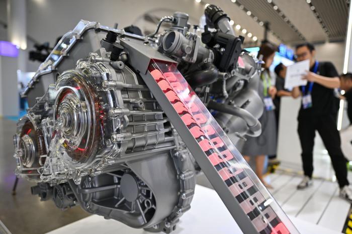 9月27日拍摄的2025世界新能源汽车大会上展出的一款混合动力系统。