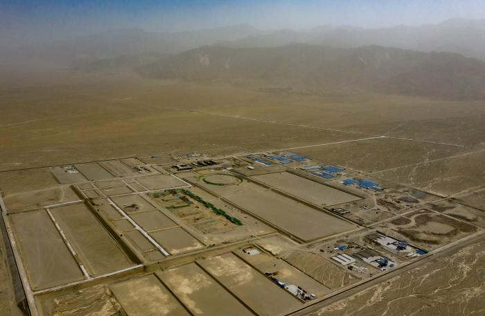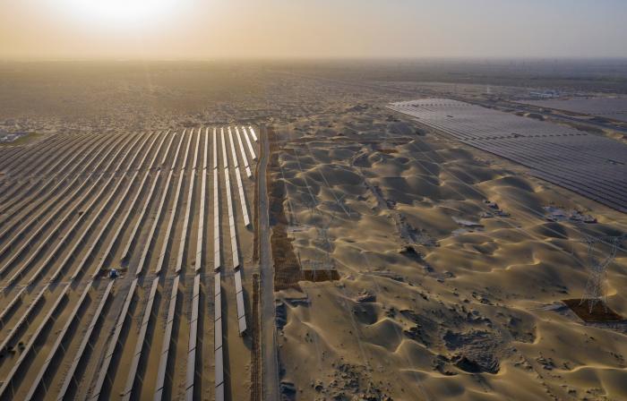 在新疆吐鲁番市鄯善县拍摄的1GW“光热+光伏”一体化项目(7月28日摄,无人机照片)。新华社发(徐自鹏 摄)