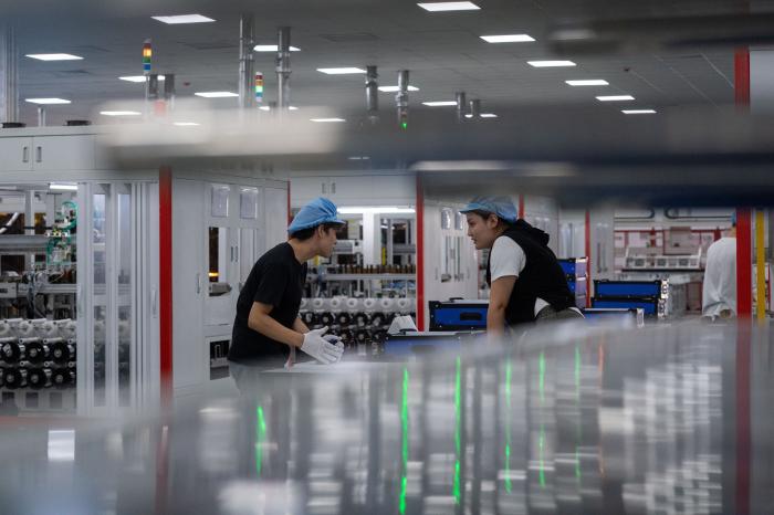 从点点微光到万家璀璨,从照亮边陲到赋能全国,来自新疆的绿电“追风逐日”,正跨越千里守护你我的清晨和夜晚。9月22日,工人在新疆巴音郭楞蒙古自治州若羌县的国晟企诚新能源有限公司生产光伏电池片。新华社记者 江文耀 摄