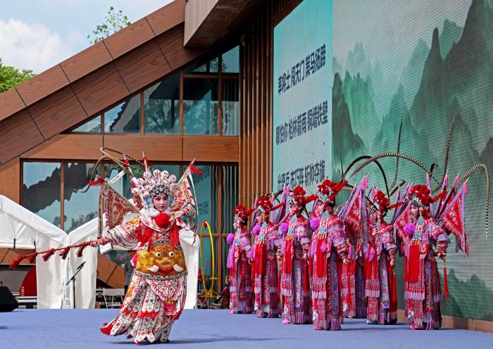 本次文采会采用线上线下相结合的方式,来自长三角地区的近200家机构参加现场展示展演,近1600家机构、近万项产品参与线上展示展演。9月27日,演员在文采会上表演婺剧。