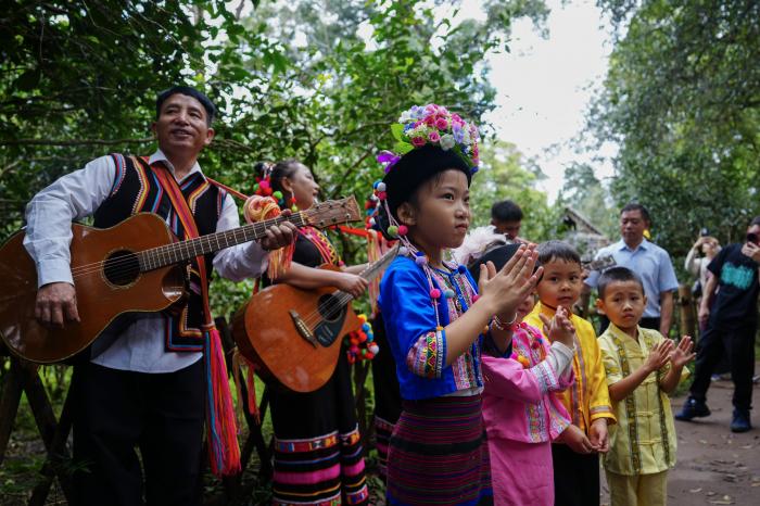 9月27日,演员在景迈山大平掌古茶园为游客表演。